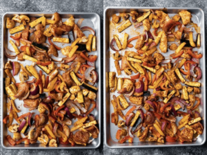 A great, veggie-packed meal prep that requires only a sheet pan and a small bit of your time (and money). This sheet pan meal features a smoky dressing and can be served with rice or another grain of your choice (quinoa, couscous, and mashed potatoes would all work). You’ll need: