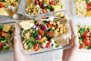 Here’s a great healthy and vegetarian option. A lot of vegetarian meals (falafels, salads, pasta salad, and so on) make great meal prep, since some meat doesn’t reheat great. This one is easy and super fresh. You’ll need: